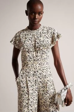 Ted Baker Pink Brigid Cape Jumpsuit With Ladder Tape Detail