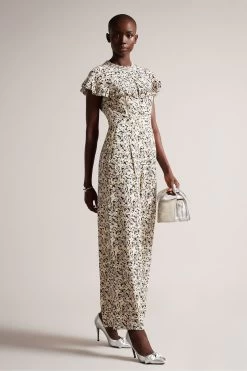 Ted Baker Pink Brigid Cape Jumpsuit With Ladder Tape Detail