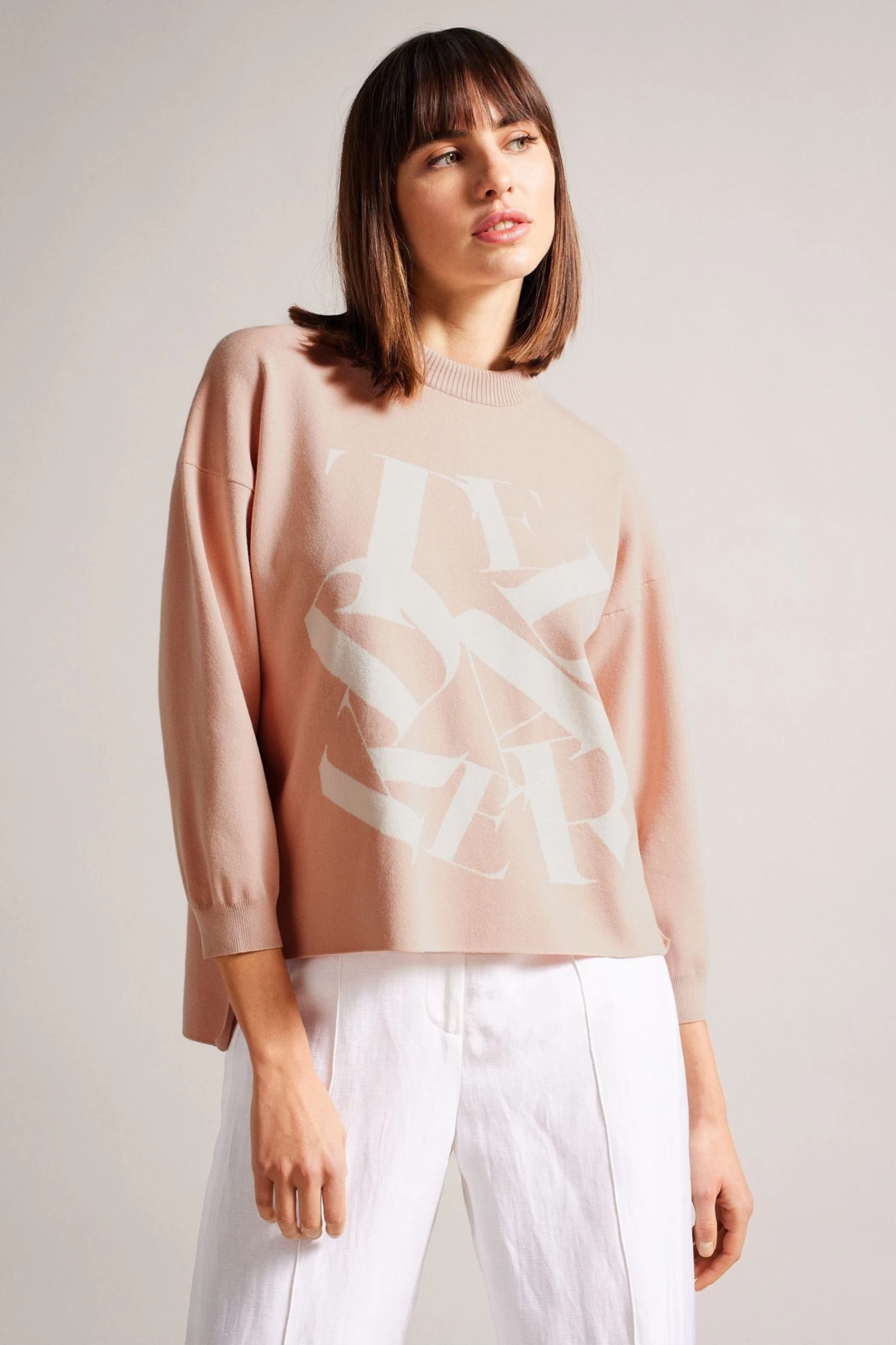 Ted Baker Pink Elssiaa Branded Jacquard Knit Top