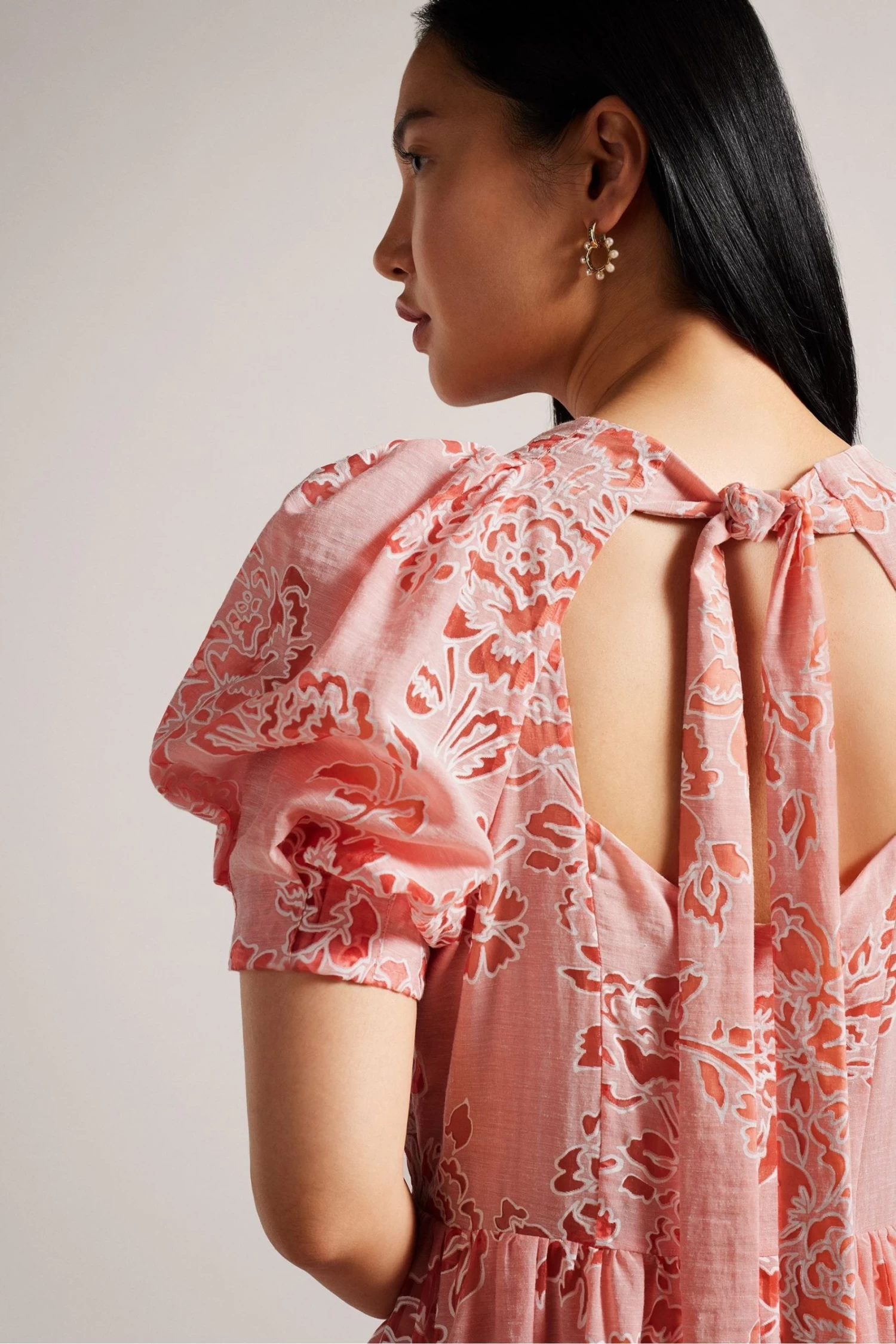 Ted Baker Pink Esthher Coral Puff Sleeve Tiered Midi Dress