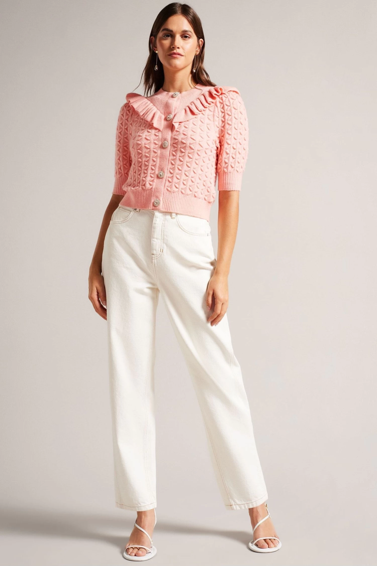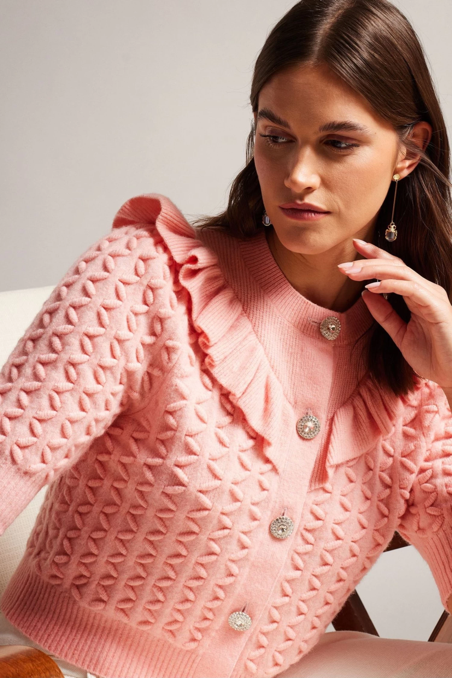 Ted Baker Pink Haniha Crew Neck Frill Detail Cardigan