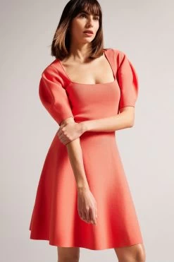 Ted Baker Pink Hayliy Coral Sleeve Detailed Skater Dress