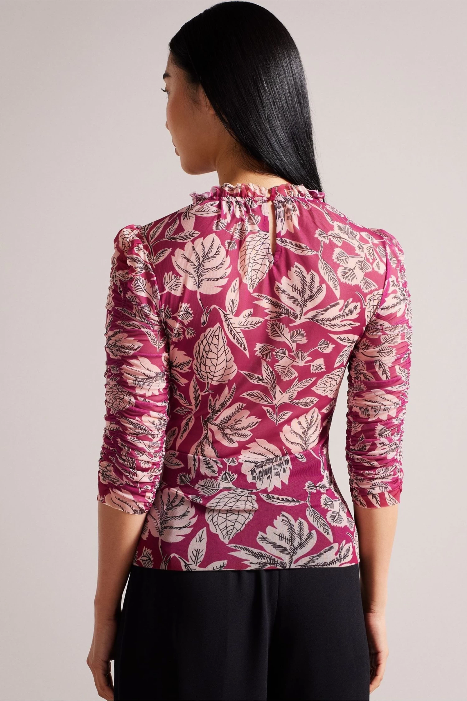 Ted Baker Pink Izabelo Printed Mesh Top With Frills