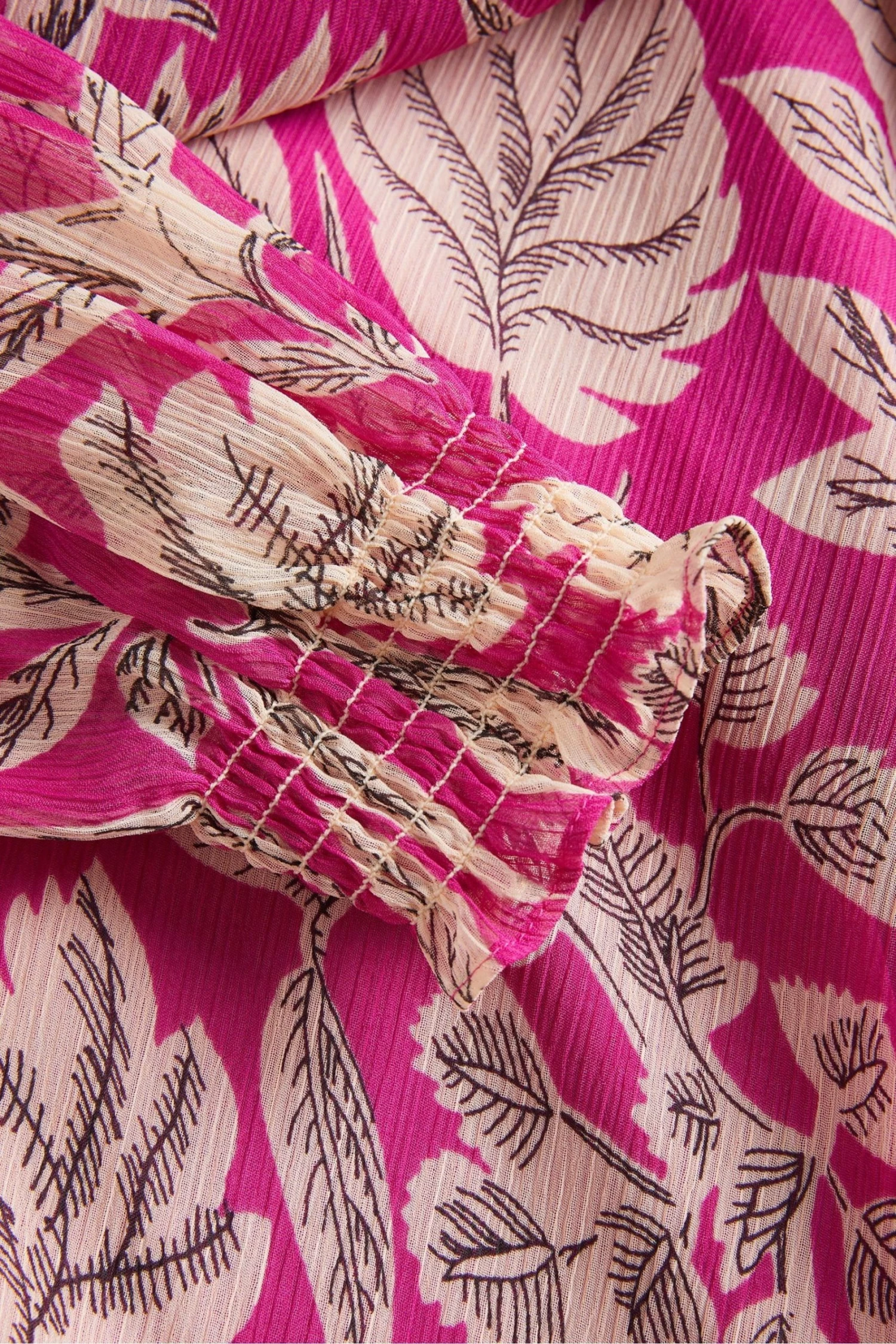 IZOBELE has it all. Our gorgeous leaf print and lace trims combine to give this dress an effortless, bohemian vibe. Style this with strappy sandals and a shoulder bag to complete the look. The fabric of this product is made with 55% recycled polyester. Using recycled polyester helps divert plastic waste from ending in landfills and helps us to reduce our dependence on virgin materials.