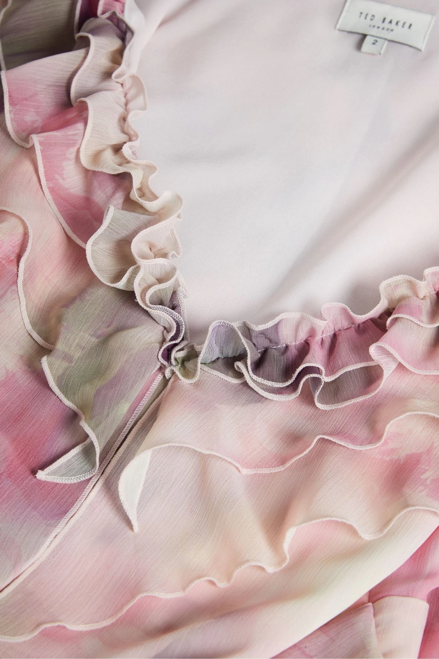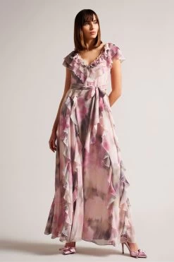 Ted Baker Pink Karenie Coral Frilled Sleeveless V-Neck Maxi Dress