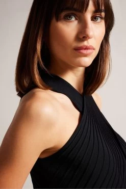 Ted Baker Pink Loulous Coral Cross Front Pleated Dress With Knit Bodice