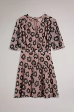 Ted Baker Pink Lucieey Fit And Flare Tiered Mini Dress