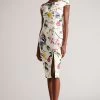 Ted Baker Pink Mirelia Coral Cross Front Pleated Midi Dress