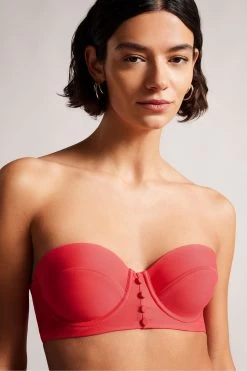 Ted Baker Pink Santine Coral Cupped Bikini Top With Button Details