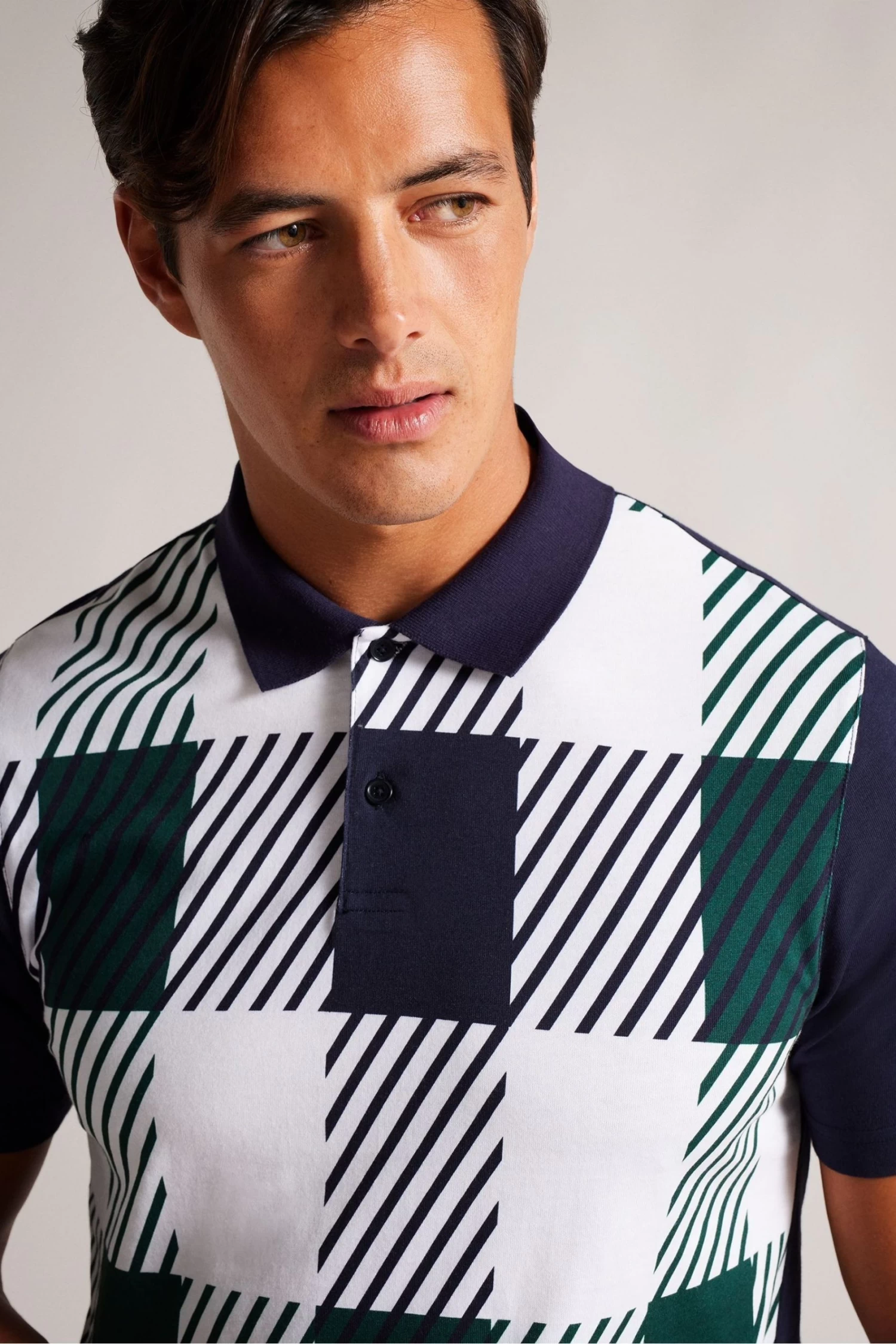 Ted Baker Pollaid Navy Regular House Check Polo Shirt