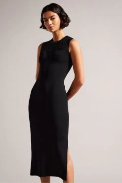 Ted Baker Polyan Stitch Detailed Black Bodycon Dress