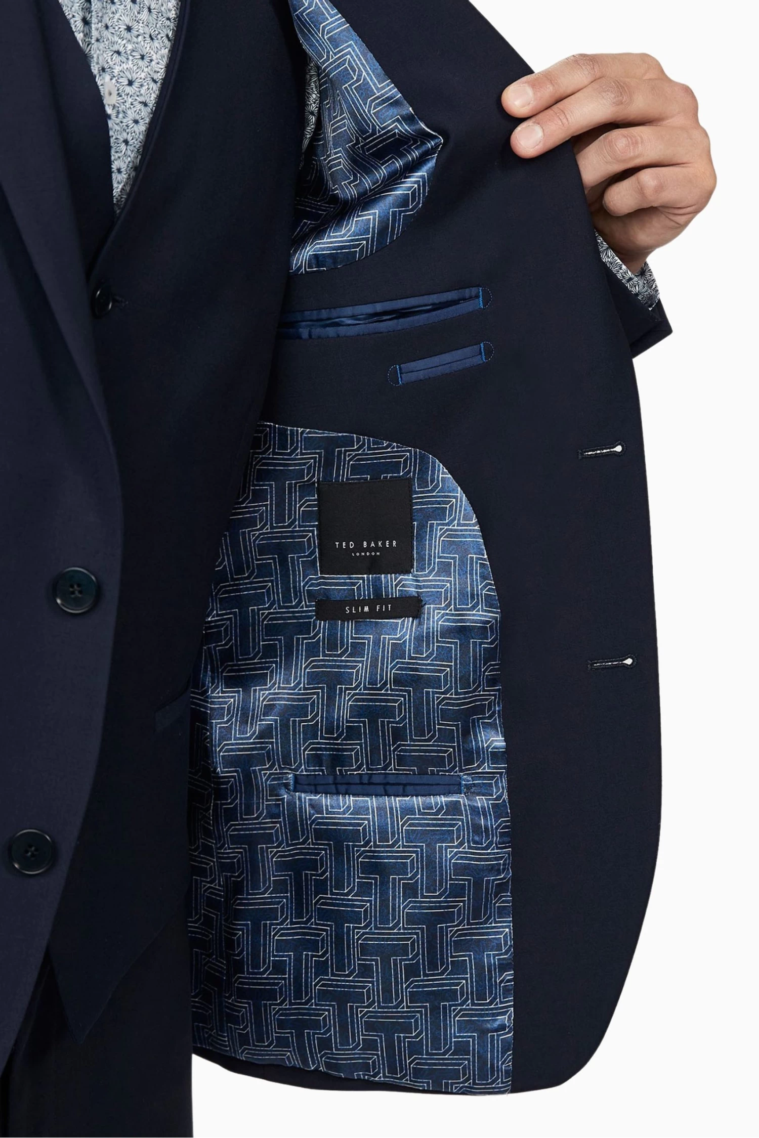 Step outside the ordinary with Ted Baker s tailoring, renowned for its brilliant quality and faultless attention to detail. Get ready to turn heads in their navy panama suit jacket, styled in a skinny fit, featuring a wool blend for an effortless, versatile finish.This Ted Baker piece has been lovingly and meticulously tailored, making for a slimmer build and our smallest fit yet, crafted closer to the body, shoulders and waist a perfectly reimagined look for all of your smart occasions. This is Ted Baker no ordinary designer label. Expertly crafted, skilfully built to last and dedicated to making a man look his very best.