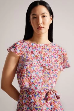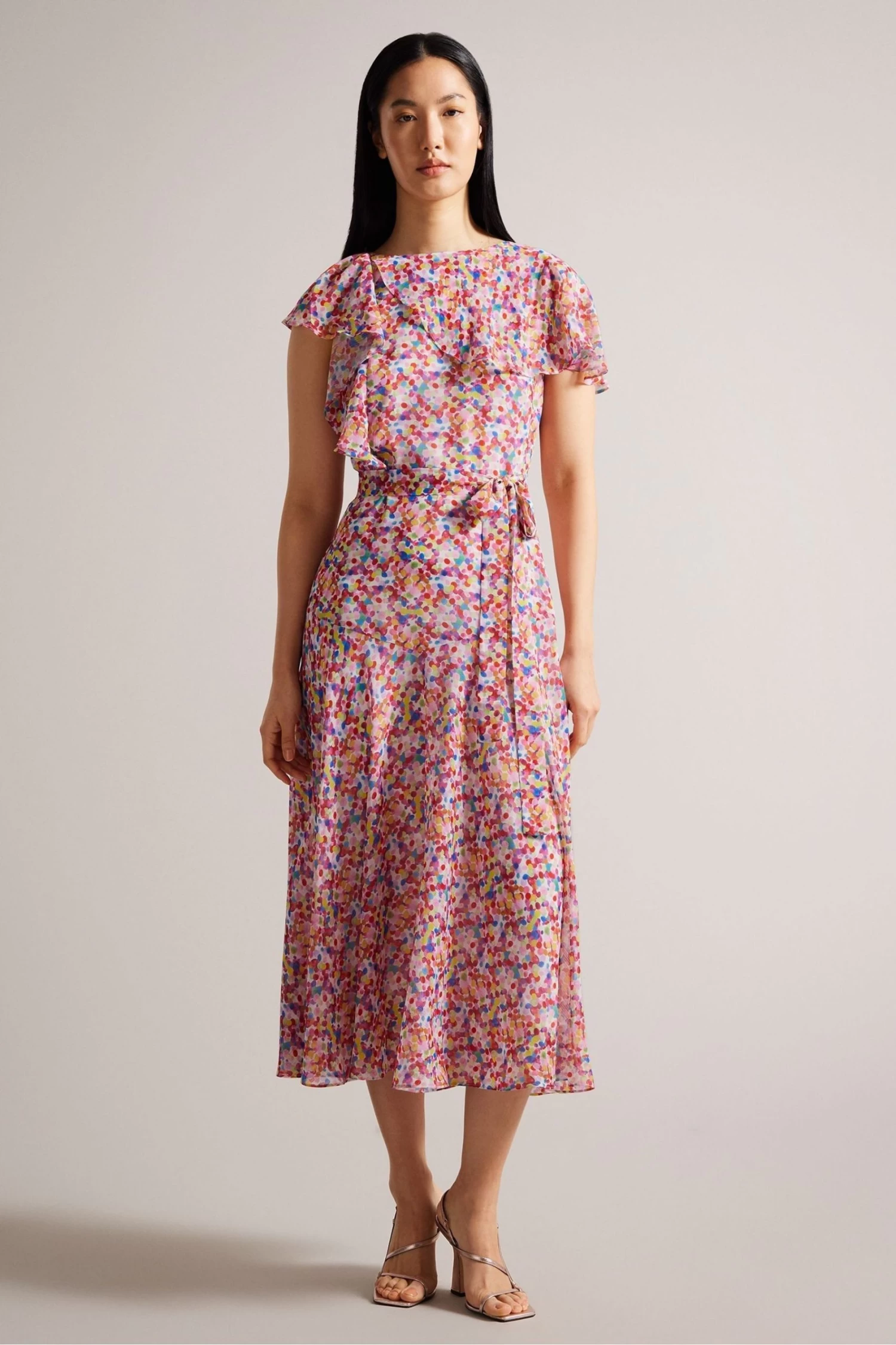 Ted Baker Priiyah Midi Belted White Tea Dress With Ruffles