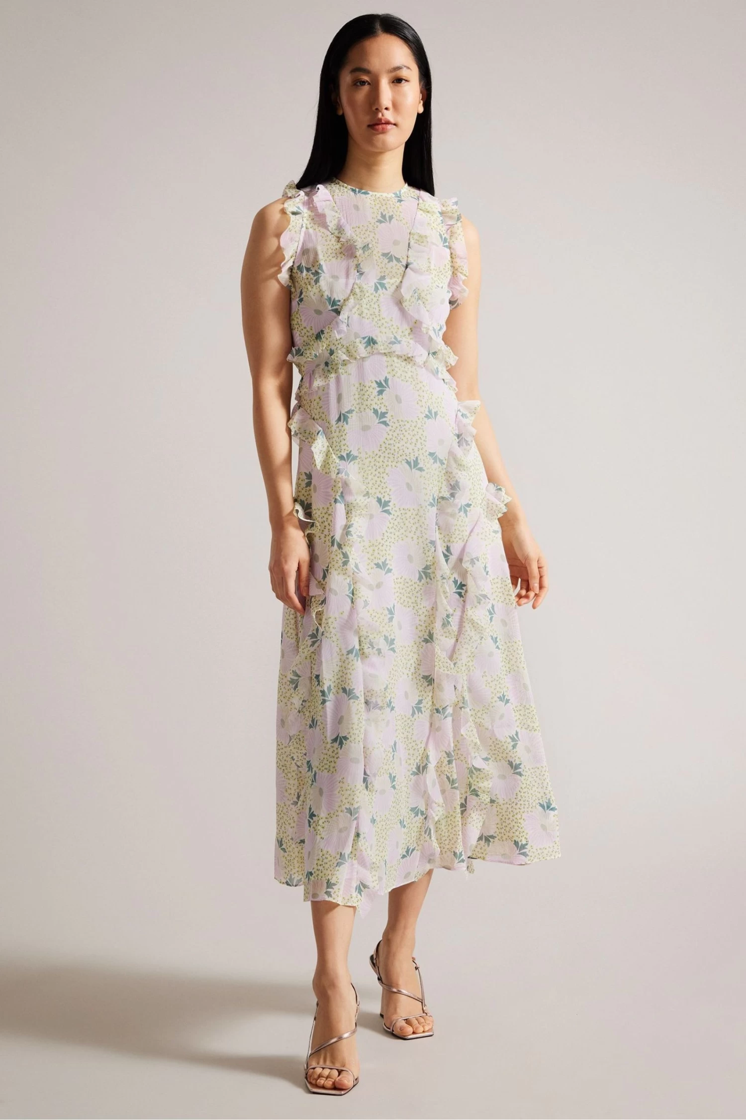 Ted Baker Purple Calinia Sleeveless Waterfall Midi Dress