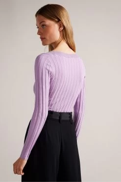 Ted Baker Purple Jolia Engineered Rib Knit Top