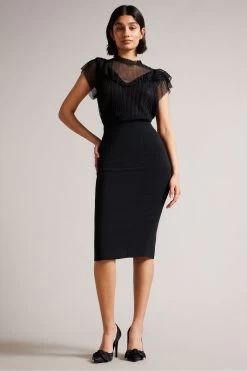 Ted Baker Raees Black Pintuck Detail Pencil Skirt