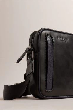 Ted Baker Rayson Webbing Wax Leather Mix Shoulder Black Bag