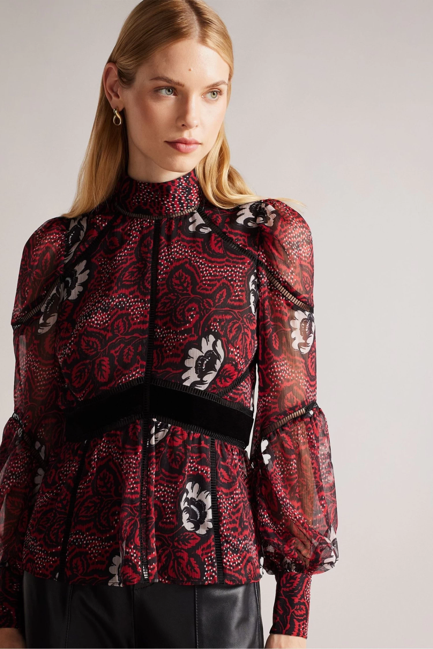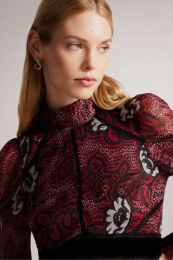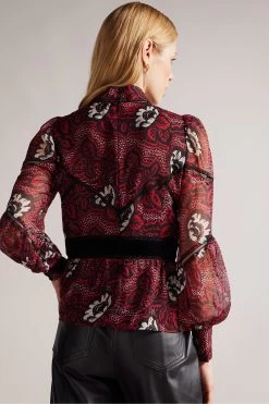 Ted Baker Red Alexxei Ladder Trim Insert Top With Velvet Detail