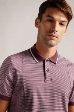 Ted Baker Regular Maroon Red Taigaa Striped Panelled Polo Shirt