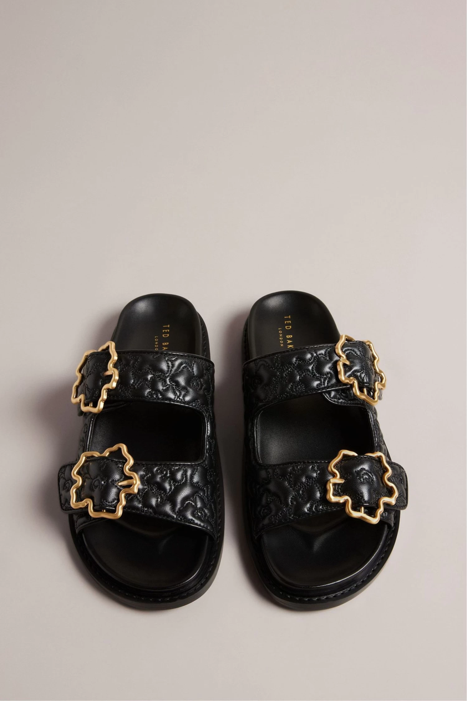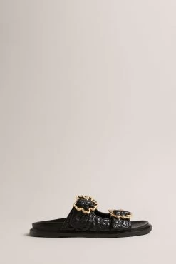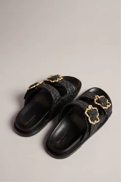 Ted Baker Rinnely Magnolia Buckle Slide On Black Sandals
