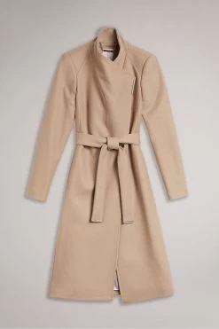 Ted Baker Rose Midi Wool Wrap Coat With Shoulder Panels