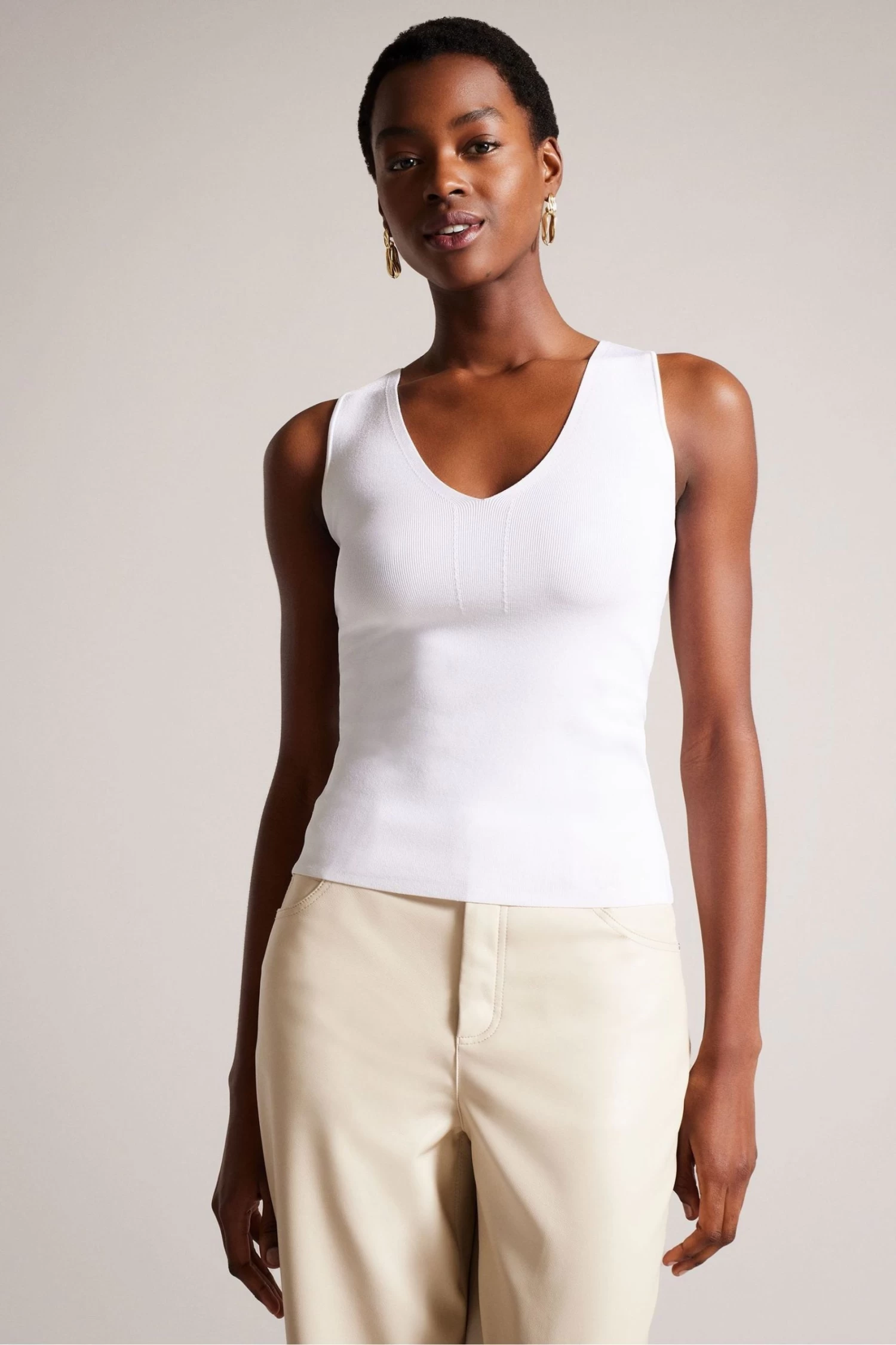 Ted Baker Sarhaa Knitted Fitted White Vest