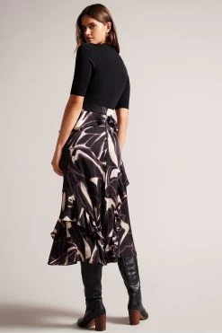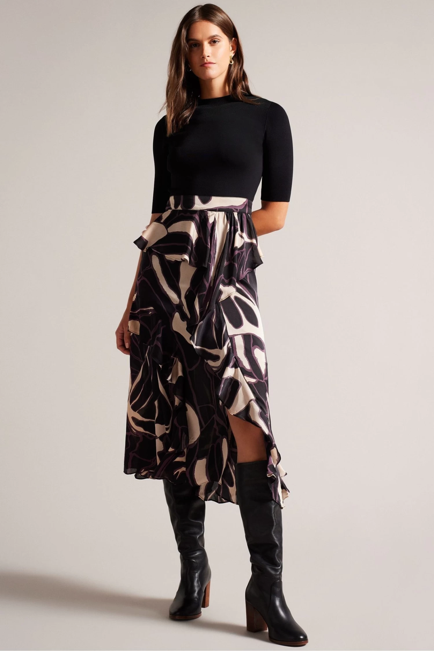Ted Baker Serepha Black Fitted Knit Bodice Dress With Ruffle Skirt