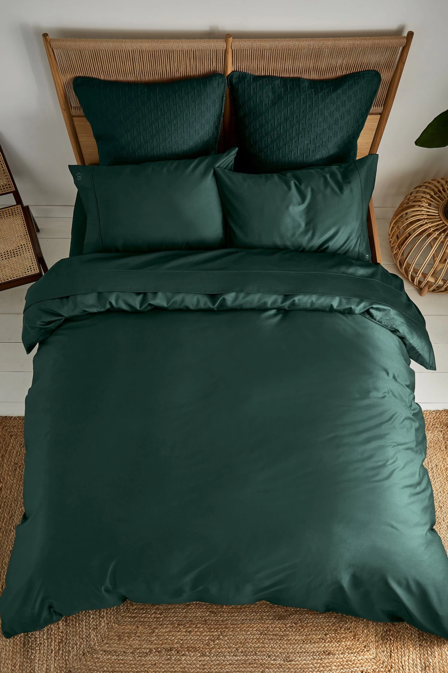Silky smooth, 250 thread count cotton sateen bedding in perfectly plain dye. Style along with the Ted Baker patterned bedding collection or simply alone. Choose from a duvet cover, fitted and flat sheet, square oxford pillowcase or standard pillowcase to enhance the look. Available in a choice of white, silver, soft pink, forest or black. The Ted Baker magnolia embroidered logo is attached to the pillowcases and flat sheet for that signature Ted Baker touch.