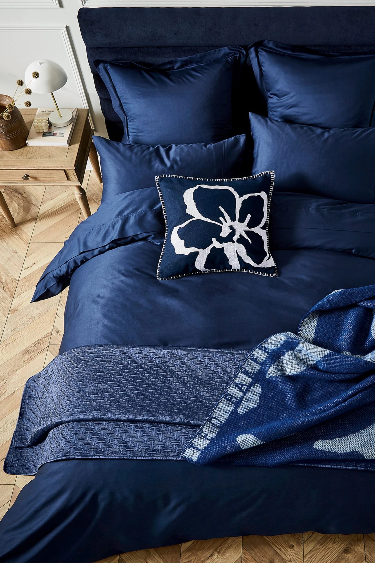 Silky smooth, 250tc cotton satin bedding in perfectly plain dye. The Ted Baker magnolia embroidered logo is attached to the pillowcases and flat sheet for that signature statement finish.
