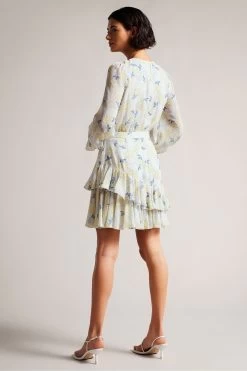 Ted Baker Sky Blue Suziiee Waisted Asymmetric Ruffles Mini Dress
