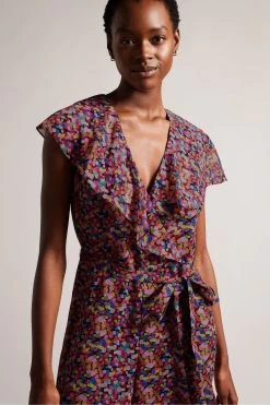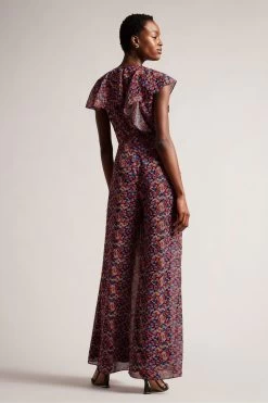 Ted Baker Surya Black Ruffle Front Wide Leg Jumpsuit