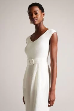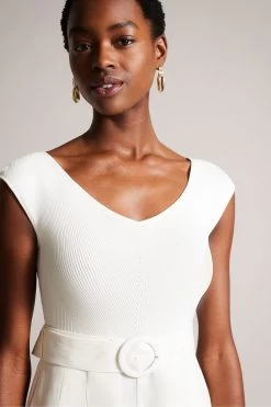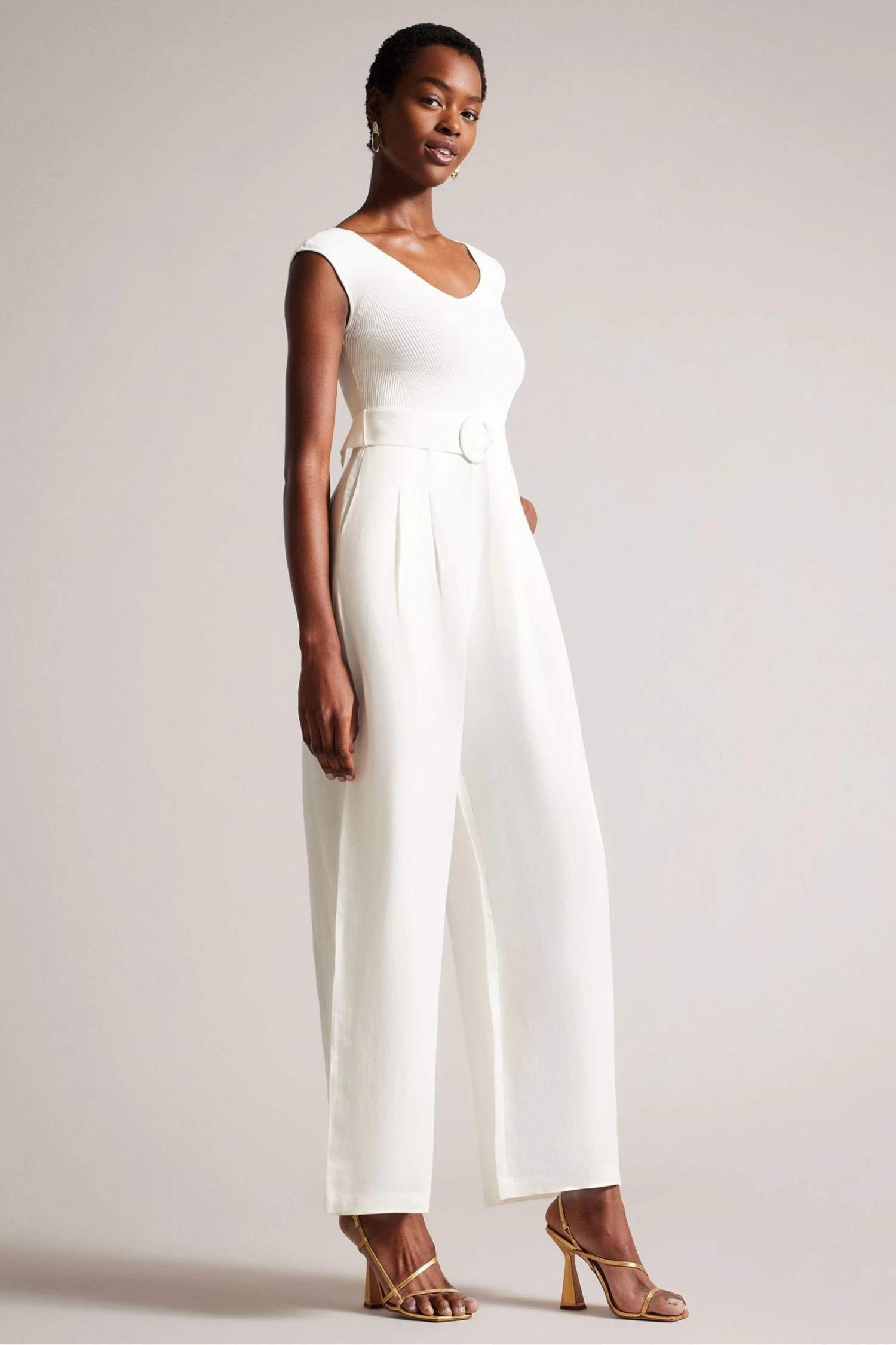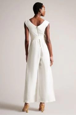 Ted Baker Tabbiaa White Off The Shoulder Wide Leg Jumpsuit