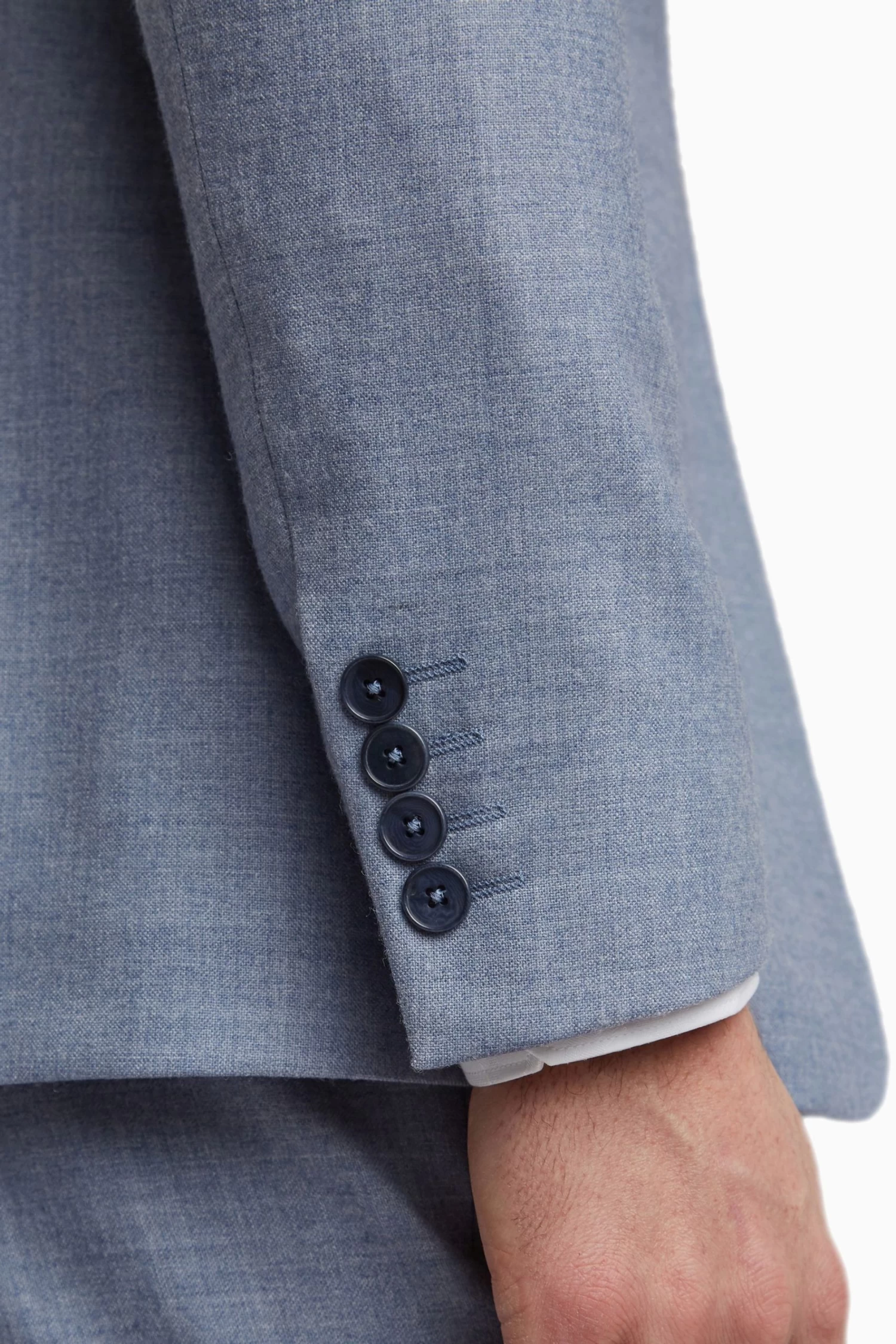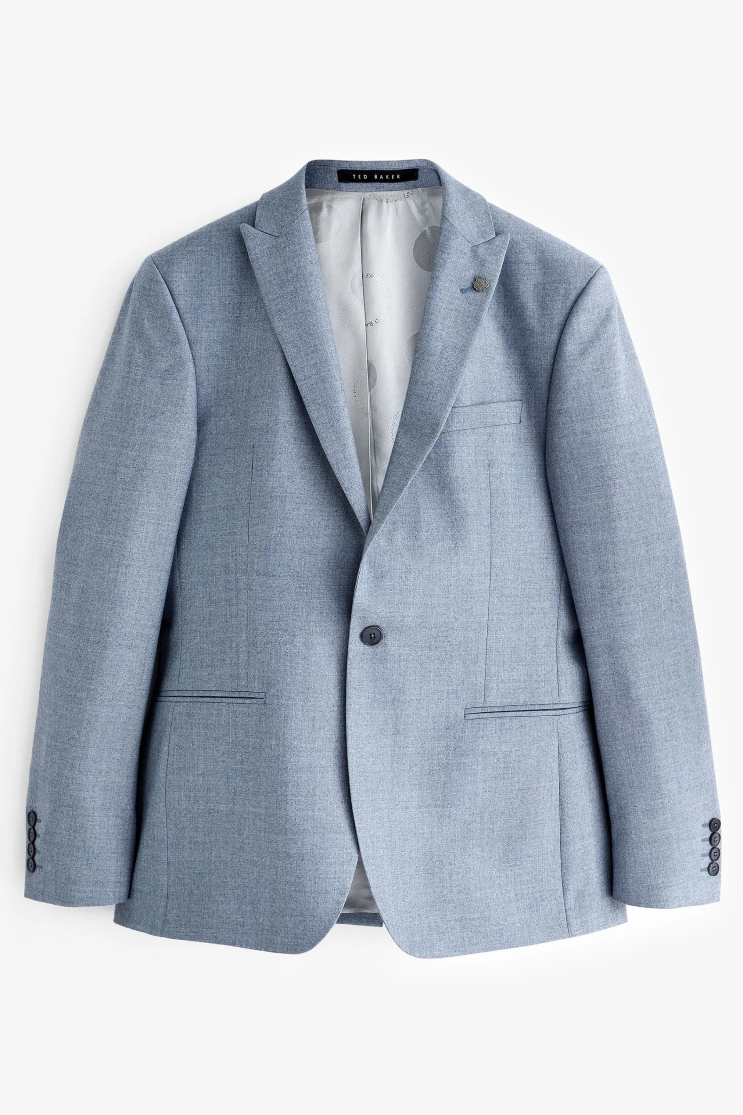 Looking for the perfect suit jacket to elevate your style? Look no further than this Ted Baker piece in a dusty light blue flannel. In a soft wool blend, this slim-fitting design with a classic peak lapel features a two-button fastening. Offering an inbuilt pocket square with a signature Ted Baker lapel pin for added style, pair your suit jacket with the matching suit trouser for the full effect.