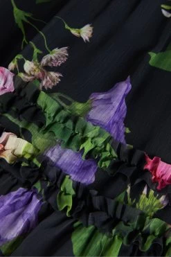 A bouquet of flowers blooms on the THIEAA midi skirt, which features ruffled tiers for a soft and feminine look. The smocked waist panel and A-line silhouette make this a welcome addition to your wardrobe. The fabric of this product is made with 100% recycled polyester. Using recycled polyester helps divert plastic waste from ending in landfills, and helps us to reduce our dependence on virgin materials.