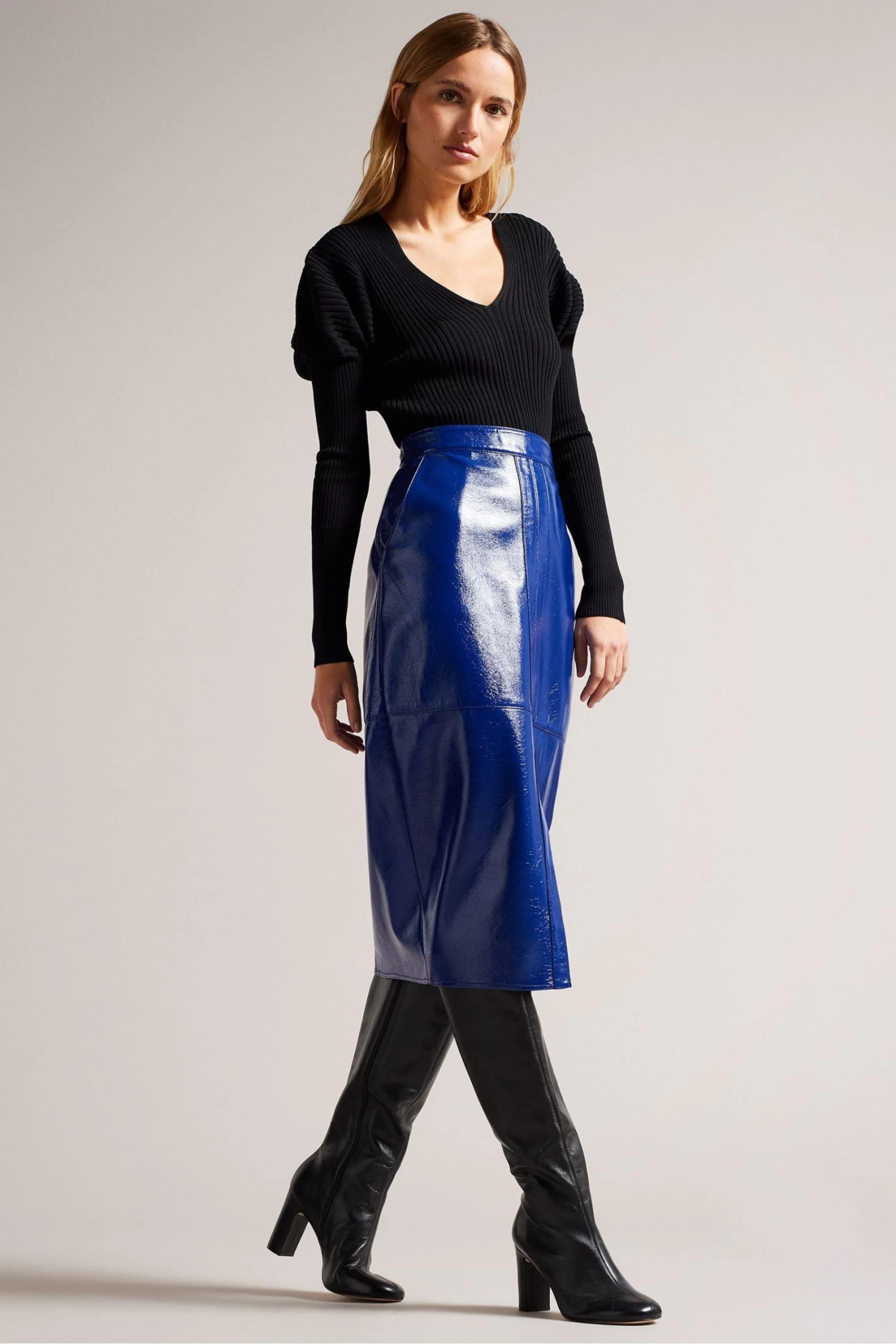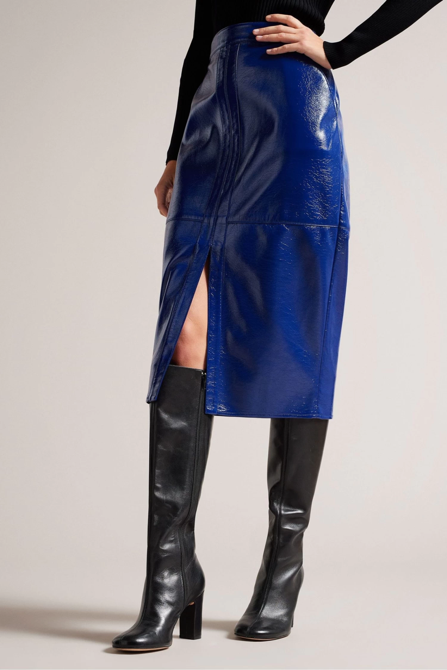 Ted Baker Vinell Blue Panelled Vinyl Pencil Skirt