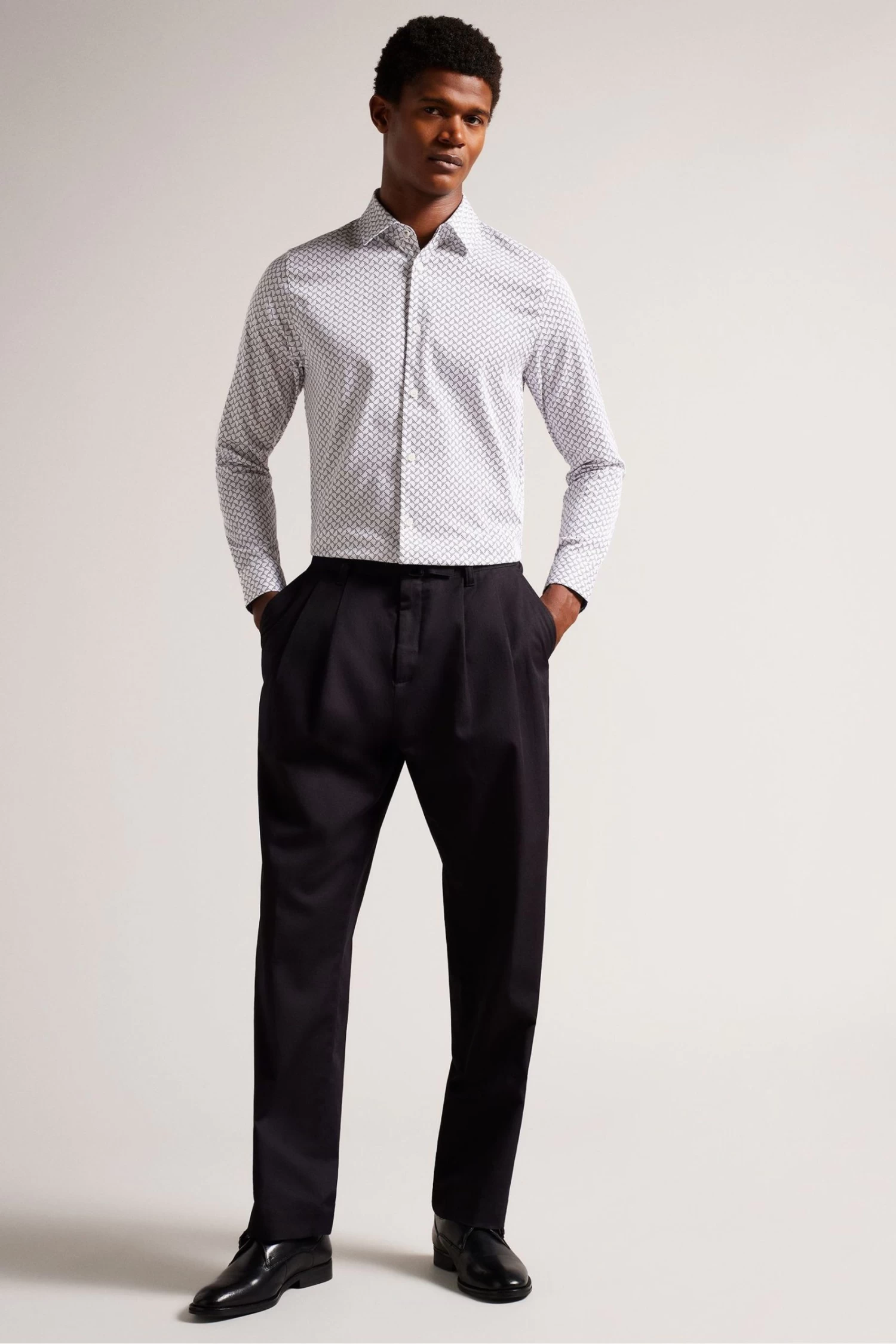 Ted Baker Willuw White Long Sleeve Line Geo Print Shirt